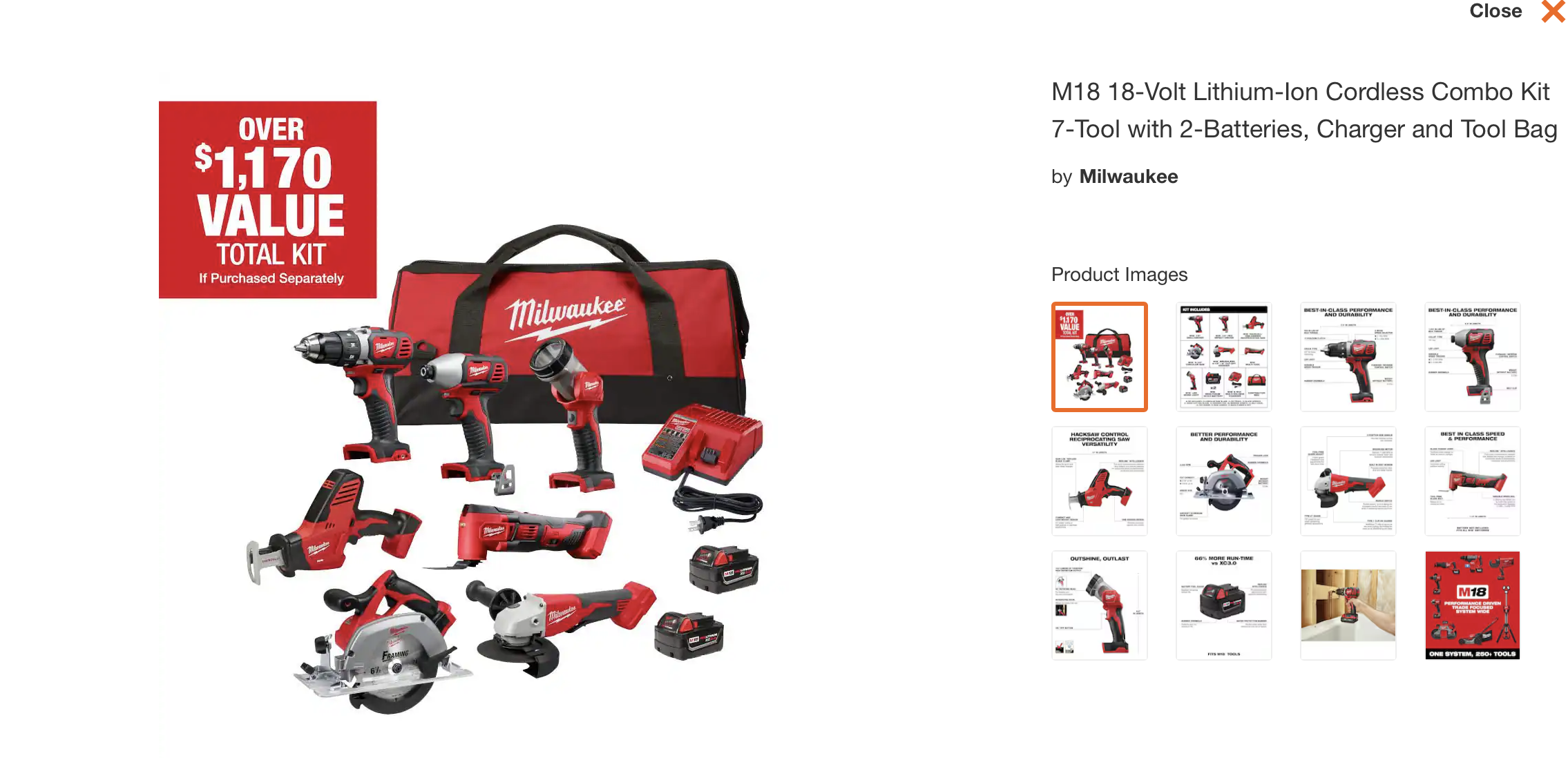 The first deal is at Home Depot and it’s the Milwaukee 7 tool combo kit. This has everything you need for your basic tool set. Drill, impact, oscillating tool, circular saw, saws all, light, grinder, and 2 batteries with a charger. This deal is for $499 saving you a ton of money off the typical sticker price of $999. Jump over to Home Depot and grab this deal before it’s gone.