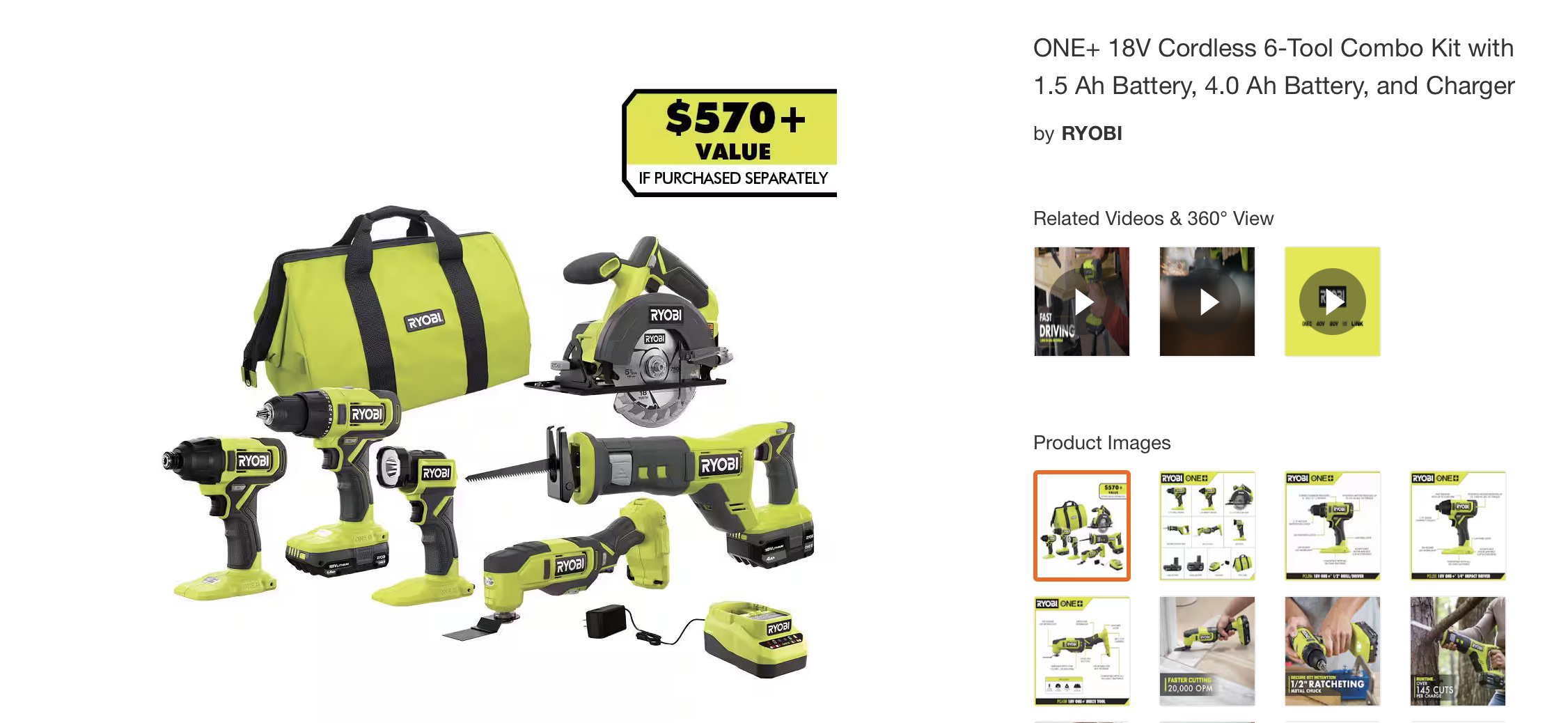 The final tool deal that you should jump on this week is for those getting started or the homeowner who needs that extra tool, but doesn’t want to break the bank. The final deal is the Ryobi 6 tool combo set that is down from $249 to $199. The $199 will get you 6 tools that are all but necessary for any small handyman/woodworkers tool box.