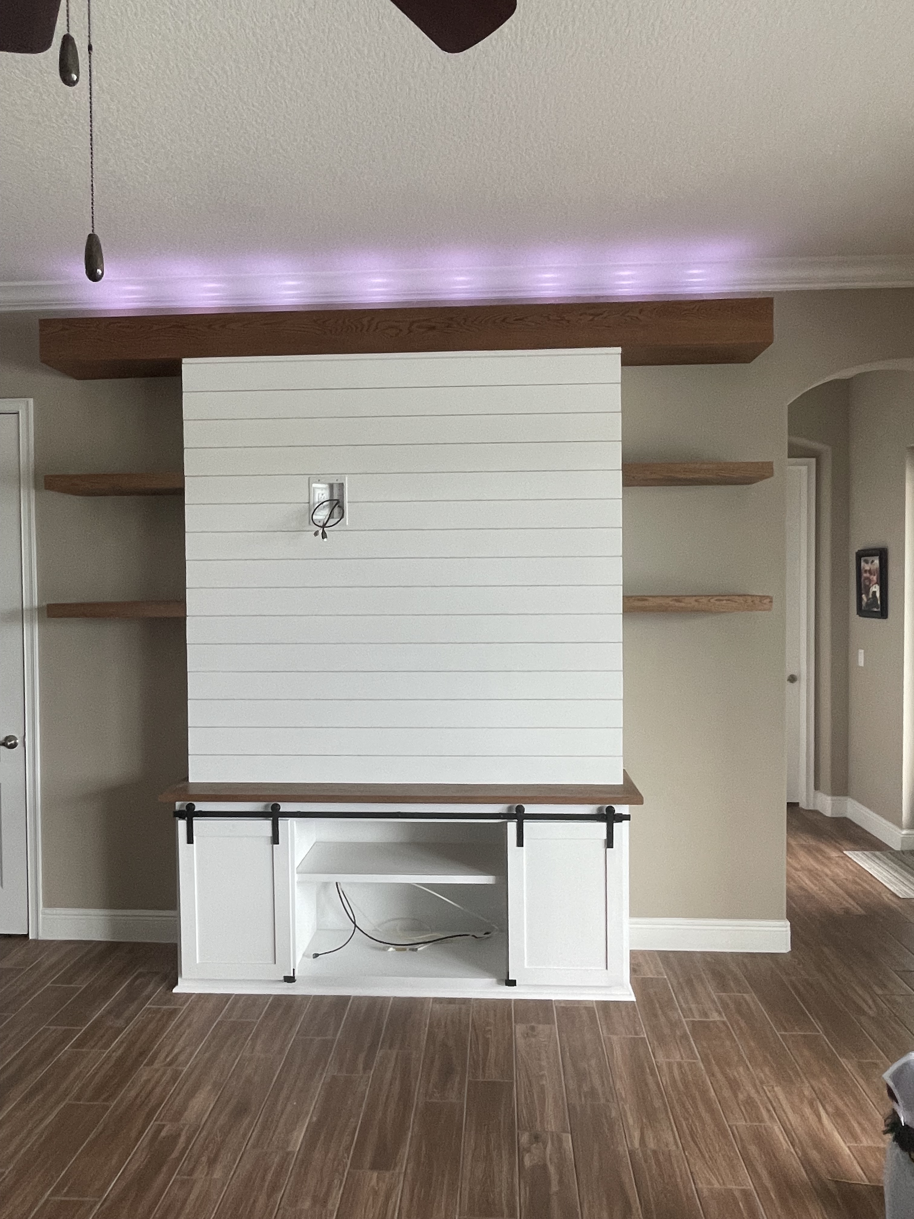 Crafted in Florida specializes in custom woodwork. Some of the most requested items include; tables, benches, built in entertainment centers, pantry, barn doors, and shiplap/wall art.