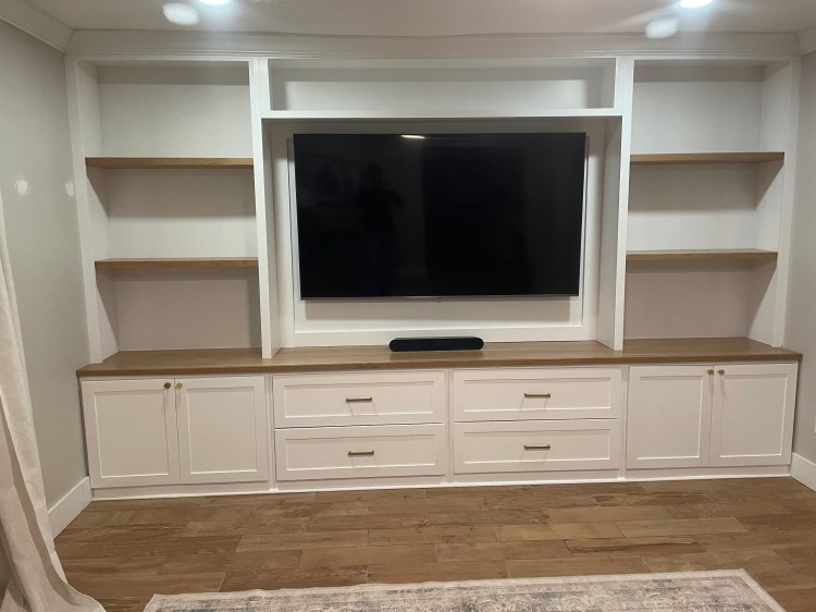 We pride ourselves in using the best possible materials for the job. Our default is to use the best cabinet grade plywood, custom made hardwood doors, high quality cabinet grade paint, and the best soft close hinges and drawer slides. All cabinets are custom made for your project to fit your space perfectly. The reason you’re going with a custom piece is to fit your space, so why would you buy cookie cutter cabinets and end up having to use a bunch of filler pieces to make it fit.